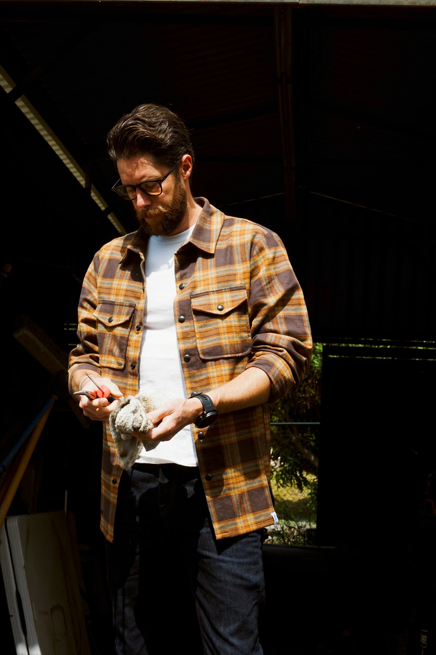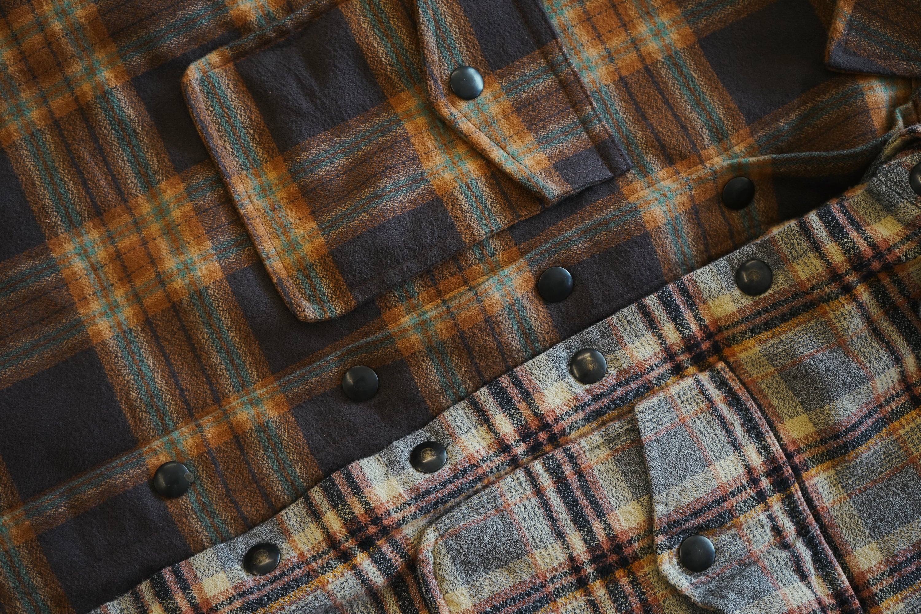 The Mammoth flannel draws its inspiration from the timeless classics you'd stumble upon in your granddad's old wardrobe. Crafted from 100% organic cotton, the unyielding fabric for these shirts was milled right here in the USA, then skillfully cut and stitched at our humble factory in Los Angeles, CA. Equipped with heavy duty DOT snap fastening buttons, these shirts are built to withstand the test of time without necessitating any button-replacement chores. We all know how much of a drag that can be!