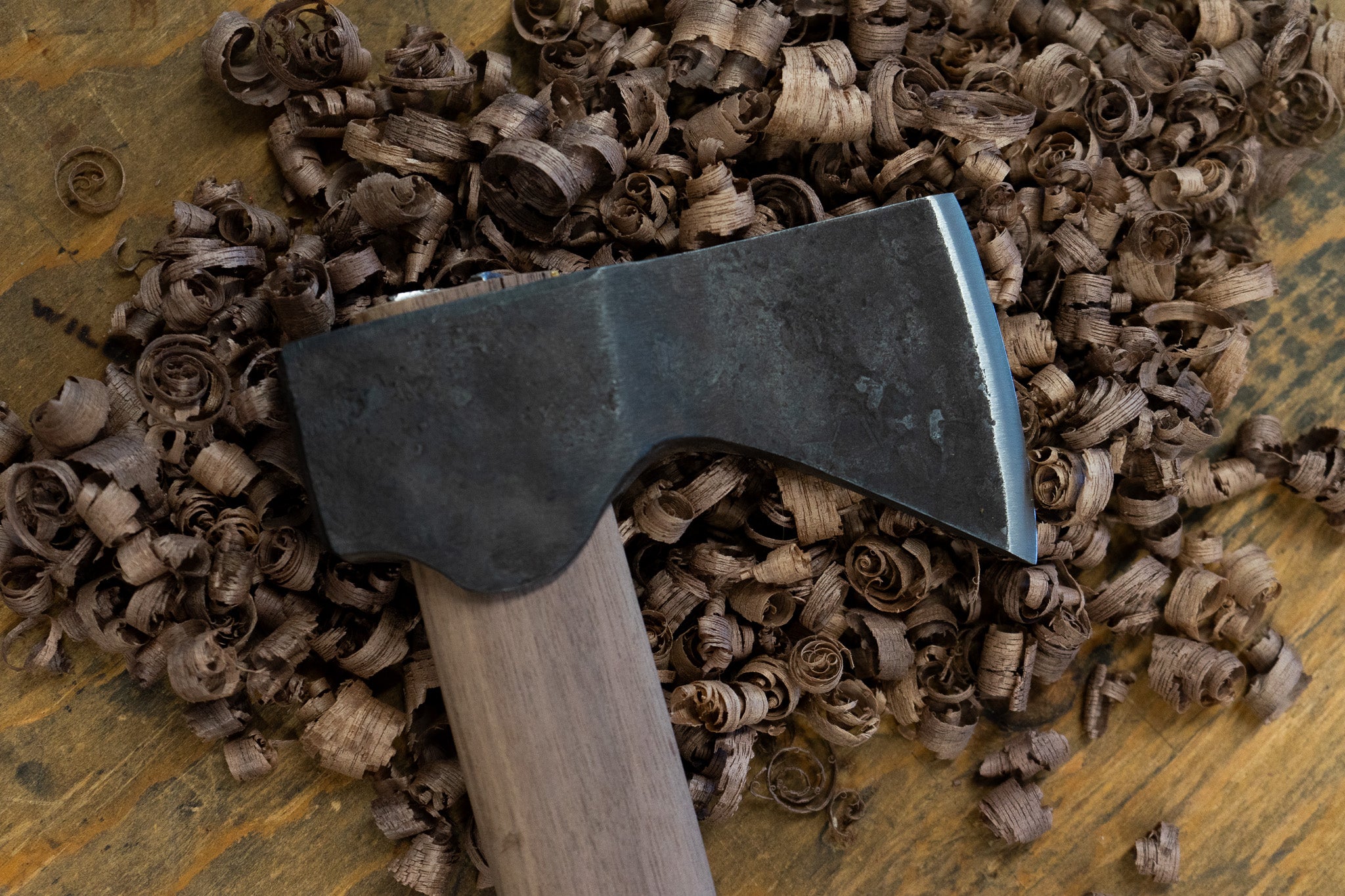 The process starts with each hatchet head, hand-forged in Ukraine, before making its way to Slater’s doorstep. Once in his hands, he carefully designs and carves each handle from a premium slab of walnut. The handles are then rubbed down with genuine wax, offering protection against the elements and ensuring longevity, while preserving the natural beauty of both the wood and metal.